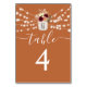 Ce numéro de table mariage allie élégance moderne et charme rustique de la campagne. Placé sur un fond orange brûlé en terre cuite, il est doté d'un monogramme classique en haut. Des fleurs d'aquarelle bordeaux de Boho dans un bocal de mason apportent une touche de romantisme, tandis que des lampes à cordes délicates insufflent au design une lumière chaleureuse et accueillante.