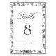 Numéro de table de mariage personnalisé Toile Florale Noir et Blanc Antique Élégant. Personnalisez avec les noms et la date du mariage.