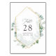 Cartes de numéro de table de mariage herbier d'eucalyptus de forêt sauvage avec cadre géométrique doré conçu pour être personnalisé rapidement et facilement selon les spécificités de votre événement.