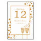 Ces cartes de numéro de table Mariage Gold Champagne Bubble sont parfaites pour tout couple qui planifie une fête mariage glitzy Le design élégant peut être personnalisé pour convenir à votre événement spécial et sera la carte de table parfaite pour tout événement vintage à thème, y compris : douches nuptiales, fiançailles, wedding showers, fêtes d'anniversaire et bien plus encore.