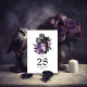 Cartes de numéro de table de mariage gothique de hiboux floraux vintage fantaisistes avec des accents de violet personnalisables selon les spécificités de votre événement.