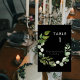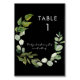 Numéro de Table de Mariage Feuillage. Nom personnalisé. Combinaison de script et de serif. Élégant et moderne. Noir.