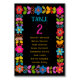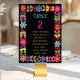 Guidez vos invités dans un style dynamique avec cette carte moderne de table de Mariage mexicain. Avec un cadre fleuri coloré inspiré de l'art folklorique mexicain traditionnel, des fleurs audacieuses de pop rouge, jaune, rose et turquoise contre un riche arrière - plan noir. Le contraste saisissant garantit que le numéro de table est facile à lire tout en ajoutant une touche festive et élégante à votre décor de réception. Parfait pour les couples qui souhaitent imprégner leur célébration de charme culturel, de couleurs joyeuses et de sophistication moderne.