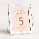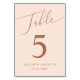 Numéro de table de mariage minimal et élégant avec texte de script moderne qui dit "Table" en haut sur un arrière - plan rose vif.