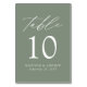 Cartes de numéro de table mariage tendance et minimaliste avec lettrage moderne blanc avec "Table" dans un script de calligraphie moderne. Le design est composé d'un arrière - plan vert sage ou d'une couleur de votre choix. Le dessin se répète à l'arrière. Pour commander les cartes de table : ajoutez votre nom, votre date de mariage et votre numéro de table. Ajoutez chaque numéro à votre panier individuellement et retirez-le lorsque vous avez terminé.