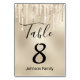 Numéro de table de mariage pailleté or luxueux qui coule, double face.