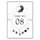 Numéro de table de mariage élégant avec une belle illustration montrant les phases de lune et la typographie moderne.
