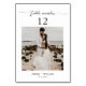 Ce design de numéro de table mariage est aménagé simplement et élégamment avec un script décoratif en haut, un numéro de table en gras au centre et une photo de couple romantique comme point central. L'arrière - plan blanc propre et le texte minimal en bas créent un look raffiné, moderne et personnalisé.