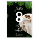 Préparez la scène pour une fête magique avec notre Wild Tropical & Lush Palm Feuille Photo Mariage Numéro de table! Ce design unique transporte vos invités dans un paradis tropical, avec un agencement époustouflant de feuilles de palmiers sauvages ornés de gouttes d'eau scintillante. Trouvez votre siège dans le style ! Un numéro de table de premier plan prend le devant de la scène dans une police audacieuse et moderne, guidant vos invités vers leur table désignée. Personnalisez-le avec les noms de la mariée et du marié, en ajoutant une touche distinctive. Un délicat symbole de noeud relie élégamment leurs noms, symbolisant la belle union qu'ils partagent. Faites une impression durable ! Personnalisez davantage vos numéros de table en ajoutant une photo de vous et de votre partenaire, créant une expérience unique et mémorable pour vos invités. Complétez le design avec votre date et votre emplacement mariage, en ajoutant une touche de détail sentimental. Les outils de design de Zazzle font de la personnalisation une brise ! Choisissez parmi une variété de couleurs pour créer des numéros de table mariages qui complètent parfaitement votre thème mariage tropical. Numéro de table mariage, Thème de Mariage tropical sauvage, Décor de réception de mariage moderne, Décor de Mariage Zazzle, Détails de Mariage personnalisables, Thème de mariage élégant, Design Mariage moderne, Vaisselle de Mariage personnalisée, Signal de réception de mariage photo, Mariage tropical Numéro de table Cartes