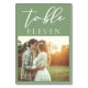 Ce simple numéro de table de mariage vert sauge est doté d'un élégant script blanc pour une cérémonie en plein air dans un cadre naturel avec votre photo de couple fiançailles. Typographie minimaliste sur un décor vert clair et paisible pour un lieu rustique à l'extérieur près d'une forêt d'arbres.