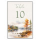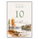 Donnez le ton à votre mariage de automne avec ce numéro de table de Mariage romantique, avec un lac serein et une scène de montagne superposés sur des imprimés de lin rustique. Idéal pour un mariage extérieur douillet, des événements d'automne ou des mariages de destination au bord de l'eau. Personnalisable avec vos noms, dates et emplacement - partie de notre collection de Mariages de automne pour une suite de papeterie coordonnée.