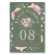 Numéro De Table Mariage Rose Pâle Floral Eucalyptus Vert Sauge