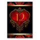 Cartes de mariage rouge, noir et or avec coeur satiné rouge riche et arrière - plan damassé rouge noir et or. Cette élégante carte de numéro de table rouge, noir et or mariage est facilement customisée avec les détails de votre événement. Il suffit d'ajouter le numéro de table et il mettra automatiquement le numéro sur les deux côtés, l'ajouter à votre panier et le faire autant de fois que nécessaire pour votre nombre de tables.