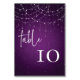 Elégant Royal Purple String Lights Mariage Numéro de table. Le type de texte et la couleur peuvent être modifiés dans le menu d'édition. La même conception est au verso et le numéro sera mis à jour simultanément lorsque vous la changerez. Ajoutez chaque numéro de votre panier séparément.