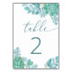 Numéro De Table Mariage Succulent turquoise | Bleu vert botanique
