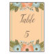 Parfait pour une ambiance caribéenne, ce panneau de table présente un magnifique fond pêche avec une police marron chaud. La bordure est bleu clair avec de charmantes illustrations florales bleues, pêche et vertes.