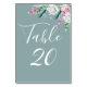 Carte de numéro de table pour réception de mariage vert sauge d'été conçue avec un bouquet de fleurs rose pastel et vert sauge. Le texte comprend : Table et un numéro, sur fond vert sauge - à l'avers comme au verso. Pour personnaliser, insérez simplement un numéro unique pour chaque carte requise. Notez que le numéro sera automatiquement répété au verso. N'oubliez pas de consulter la collection complète de mariage vert sauge d'été pour les papeteries et accessoires de réception assortis.