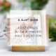 Ajoutez une touche de finition spéciale à vos tables d'accueil de mariage avec ces cartes de nom de table photo personnalisées. Nommez chaque table après une destination de voyage mémorable et ajoutez une photo et le nom de la destination. Votre photo apparaît en fond saigné avec le nom de l'emplacement en lettres noires modernes superposées en bas, et "table" en script de calligraphie décorative.