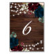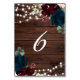 Numéro De Table Marsala & Navy Flowers Rustic Wood 6 Table Numbers