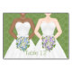 Mme et Mme deux mariées en robes mariages tenant des bouquets fleuris - cartes de table Mariages gai / fierté lesbienne mariage / cérémonie civile cartes de réglage. design gay mariage placements de Ricaso original artwork©delightful-doodles.com