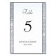 Carte de numéro de table avec modèle moderne de script manuscrit élégant avec paillettes argentées.