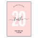 Terminez la décoration de votre événement privé ou professionnel avec ce panneau élégant de numéro de table rose. Cette carte de numéros de table féminine présente un grand nombre en rose pâle et des polices de calligraphie élégantes, idéales pour votre événement d'entreprise, collecte de fonds caritative, dîner d'anniversaire ou réception de mariage, ce design élégant conviendra à toutes les occasions ! Vous pouvez modifier tout le texte et les couleurs pour créer des panneaux de plan de table personnalisés pour votre événement.