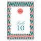 Numéro De Table Monogramme Coral rose et Turquoise Motif Zigzag