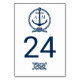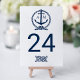 Chaque carte de numéro de table doit être customisée via "Personnalisez-la" et ajoutée individuellement au panier. La carte de numéro de table bleu et blanc marine à thème nautique comprend un monogramme d'ancre et des détails de corde et un motif à bande horizontale à l'arrière.