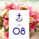 Nautical anchor and monogram framed by a lightened version of patriotic florals: white rose, blush pink peony and light blue. Preppy pink and white stripes for a summer, beach, or destination wedding event.