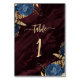 Numéro De Table Navy Blue Gold Floral Burgundy Wedding