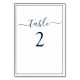 Carte de numéro de table mariage de calligraphie en bleu et blanc marine. 10 x 7 pouces.