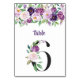 Numéro De Table No 6 Roses d'aquarelle violet et lavande