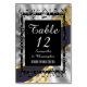 Numéro de table personnalisé classique chic élégant moderne masculin noir, gris argenté et or avec des notes musicales encadrées, sur ruban tourbillonnant et arrière - plan noir, personnalisez avec votre texte aux modèles pour vos occasions spéciales ou célébrations. Visitez le magasin de _MARIAGES PERSONNALISÉ pour trouver des produits correspondants. VEUILLEZ NOTER LA couleur dorée et la couleur argentée de l'étain ne sont pas métalliques.