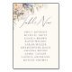Carte 'table neuf' de mariage à fleurs couleur bleu poussiéreux et crème avec un script élégant et un modèle de texte pour les noms des invités.