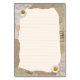 Belle page de notes vintages dans les tons beige et marron, décorée de fleurs marguerites et timbres-poste dans l'arrière - plan. Remplissez les lignes avec vos propres notes ou tout autre texte.