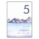 Ce numéro de table Winter Mountain est exactement ce que vous cherchez pour compléter votre simple mariage d'humour rustique. Conçu avec une aquarelle rose et bleu pastel qui se fond magnifiquement dans la marine et les tons vifs qui capturent parfaitement une soirée dans la nature. Il est sûr de réunir votre ambiance d'aventure colorado minimaliste d'une belle façon ! Gardez-le tel quel, ou choisissez de le personnaliser avec vos photos ! Vous pouvez également consulter d'autres articles de cette collection pour vraiment rassembler votre mariage entier !