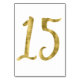 Cartes de numéro de tableau - Numéro 15 - avec effet feuille d'or (faux, imprimé comme image) sur arrière - plan blanc