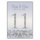 Ce design moderne de carte de table présente des accents de parties scintillant en faux argent avec un arrière - plan périwinkle. Parfait pour les mariages élégants et modernes. Les cartes de numéro de table vont jusqu'à 30.