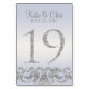 Ce design moderne de carte de table présente des accents de parties scintillant en faux argent avec un arrière - plan périwinkle. Parfait pour les mariages élégants et modernes. Les cartes de numéro de table vont jusqu'à 30.