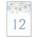 Numéro De Table Numéros de tableau floral bleu et blanc