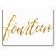 Tableau Numéro 14 : Cette luxueuse carte de numéro de table de calligraphie est placée dans une fausse feuille d'or. IMPORTANT : L'apparence du papier peint est un effet imprimé. Ce n'est pas un vrai papier d'aluminium. Si vous ne voulez pas cet effet, vous pouvez le supprimer comme ceci : 1) Cliquez sur "Customiser plus loin. 2) Trouvez l'image qui dit feuille z-or et supprimez-la. Choisissez ensuite votre propre couleur dans les couleurs arrière - plans.