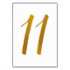 Tableau Numéro 11 : Cette carte de numéro de table de script de brosse décontracté est définie dans un faux papier doré. IMPORTANT : L'apparence du papier peint est un effet imprimé. Ce n'est pas un vrai papier d'aluminium. Si vous ne voulez pas cet effet, vous pouvez le supprimer comme ceci : 1) Cliquez sur "Customiser plus loin. 2) Trouvez l'image qui dit feuille z-or et supprimez-la. Choisissez ensuite votre propre couleur dans les couleurs arrière - plans.