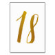 Tableau Numéro 18 : Cette carte de numéro de table de script de brosse décontracté est définie dans un faux papier doré. IMPORTANT : L'apparence du papier peint est un effet imprimé. Ce n'est pas un vrai papier d'aluminium. Si vous ne voulez pas cet effet, vous pouvez le supprimer comme ceci : 1) Cliquez sur "Customiser plus loin. 2) Trouvez l'image qui dit feuille z-or et supprimez-la. Choisissez ensuite votre propre couleur dans les couleurs arrière - plans.