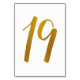 Tableau Numéro 19 : Cette carte de numéro de table de script de brosse décontracté est définie dans un faux papier doré. IMPORTANT : L'apparence du papier peint est un effet imprimé. Ce n'est pas un vrai papier d'aluminium. Si vous ne voulez pas cet effet, vous pouvez le supprimer comme ceci : 1) Cliquez sur "Customiser plus loin. 2) Trouvez l'image qui dit feuille z-or et supprimez-la. Choisissez ensuite votre propre couleur dans les couleurs arrière - plans.