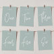Des cartes numériques simples et chic dans Pale Sage Green et white font une déclaration élégante à votre mariage ou événement. Le design comporte "table [nombre]" dans un mélange de sérigraphie classique et de lettres manuscrites. Le design se répète de part et d'autre. Cartes numérotées individuellement vendues séparément; commandez chaque numéro de table individuellement de notre collection.