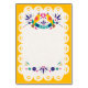 Ce cadre mexicain Papel Picado Jaune Nuestra Boda Mariage Table Number est orné d'un motif découpé ressemblant à un effet de picado papel, ajoutant une touche mexicaine traditionnelle. Accentué de détails fleuris et géométriques aux couleurs vives, le design dégage chaleur et charme, ce qui en fait un lieu idéal pour une papeterie mariage romantique.
