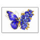 Bijoux, bleu, saphir, papillon aux fleurs pétillantes avec aile décorée de bleu, fleurs précieuses avec feuilles d'or sur arrière - plan blanc.