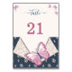 carte de numéro de tableau floral bleu marine et rose papillons