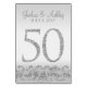 Ce design moderne de carte de table présente des accents de parties scintillant en argent faux avec un arrière - plan en argent. Parfait pour les mariages élégants et modernes. Les cartes de numéro de table vont jusqu'à 50.