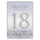Ce design moderne de carte de table présente des accents de parties scintillant en faux argent avec un arrière - plan périwinkle. Parfait pour les mariages élégants et modernes. Les cartes de numéro de table vont jusqu'à 30.